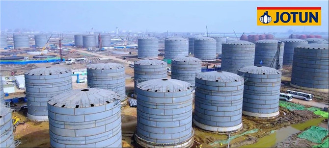 佐敦的Tankguard系列儲(chǔ)罐內(nèi)襯漆和Jotatemp系列耐高溫漆助力了盛虹石化300萬立方原油/成品油罐區(qū)、全廠管道及設(shè)備涂刷。